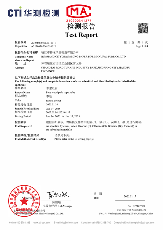 Copyright www.jjsxianglong.com (复制链接) 靖江市祥龙纸管制造有限公司专业生产 工业纸管, 热电偶纸管, 纸芯管等产品,欢迎来电订购.